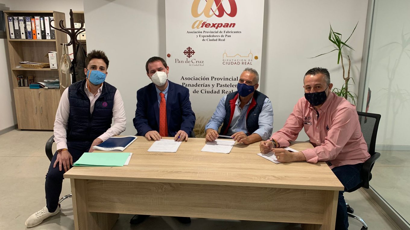 En la tarde de hoy viernes 9 de abril, el alcalde de Malagón, Adrián Fernández Herguido ha estado presente en la firma del contrato de colaboración que ha firmado el Presidente Provincial de Afexpan, Rafael Lorca Ruiz con las empresas: Formación para el Desarrollo e Inserción S.L ( DEFOIN) y Soluciones Consultoras Formativas CCR S.L ( SCF) para impartir cursos de formación a los asociados de la ASOCIACIÓN PROVINCIAL DE FABRICANTES Y EXPENDEDORES DE PAN DE CIUDAD REAL, así como a todas las personas interesadas en formarse para acceder a la profesión de panadero o repostero, en las Instalaciones situadas en Plaza Santo, núm. 8, -antiguo mercado de abastos-, de Malagón (CIUDAD REAL).