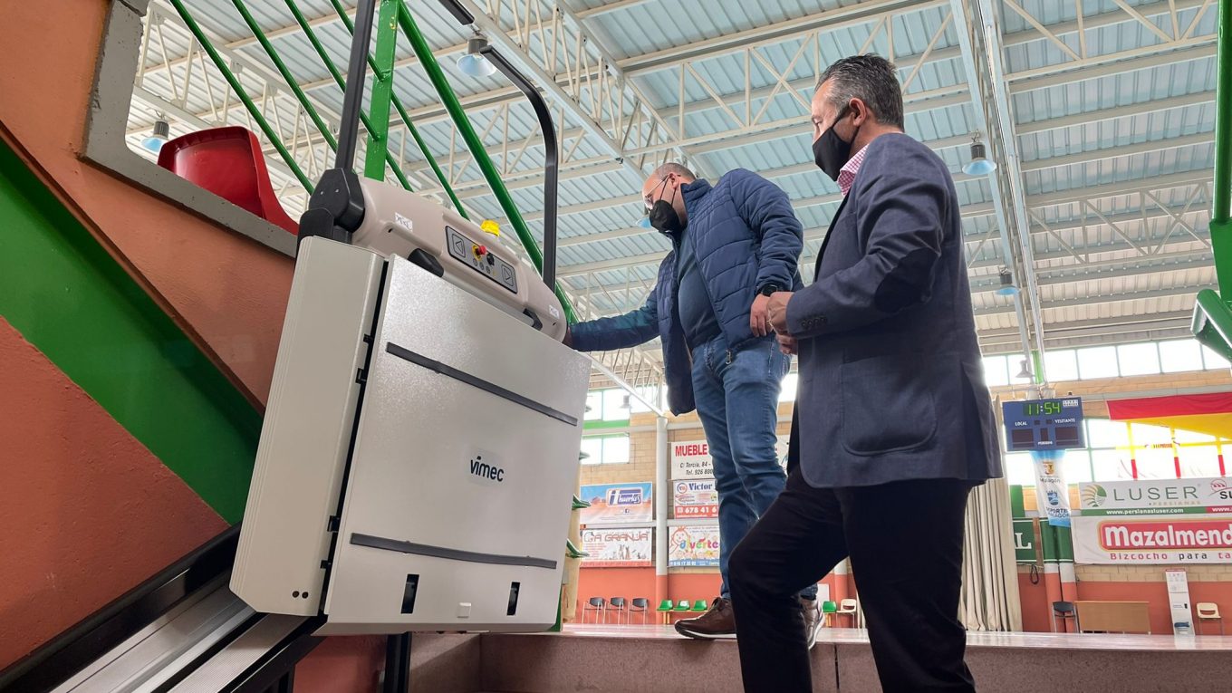 De esta manera, la primera parada se produjo en el Pabellón Cecilio Alonso, donde pudieron comprobar como se han adaptado los accesos al edificio y a la pista principal, instalando sendos elevadores para personas con cualquier tipo de capacidades diferentes, una para acceder a los vestuarios y otra para acceder desde los vestuarios a la pista.
