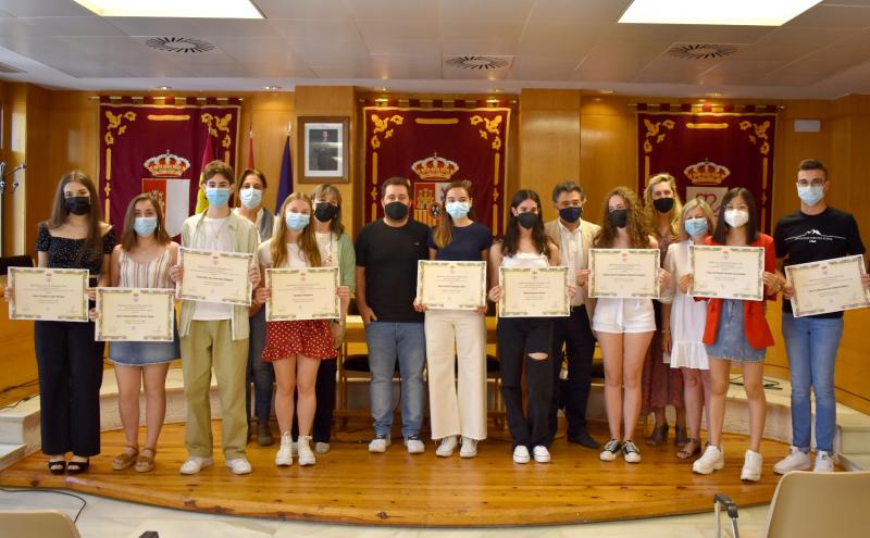 Los diez mejores expedientes académicos de Bachillerato del curso 2020/2021, cinco del instituto Ojos del Guadiana y cinco del Juan D´Opazo han recibido este miércoles el reconocimiento del Ayuntamiento de Daimiel por su brillante desempeño. Ocho chicas y dos chicos con una nota media por encima del 9,5 y que se reparten mitad y mitad entre el bachillerato de Ciencias y el bachillerato de Humanidades y Ciencias Sociales. Dos cursos donde han tenido que convivir con una pandemia, que les sacó de las aulas la primavera pasada y que ha marcado su despedida del instituto desde septiembre.