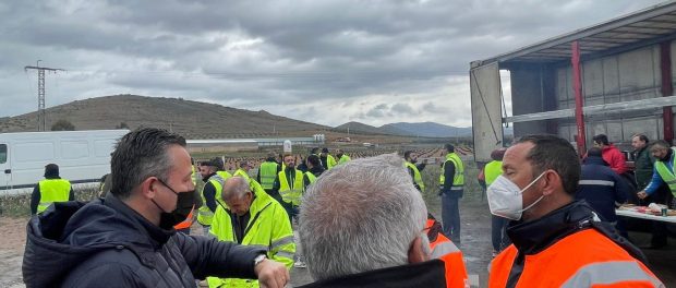 En la mañana de hoy lunes, el alcalde de Malagón, Adrián Fernández Herguido, se ha desplazado hasta el paraje del Cordel entre Malagón y Fuente el Fresno para conocer, de primera mano, las reivindicaciones que están realizando, mediante un paro indefinido de su actividad, alrededor de un centenar de camioneros y profesionales del transporte al respecto de la desmesurada subida de precios que les hace inviable la continuación de sus actividades económicas.