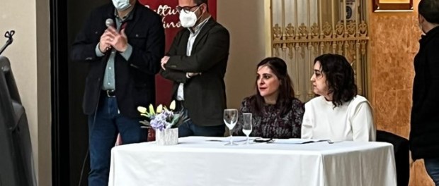 El acto comenzó con dos poetisas recitando un poema para unir la poesía con el vino y continuó con un brindis y la posterior explicación de los vinos y tapas.