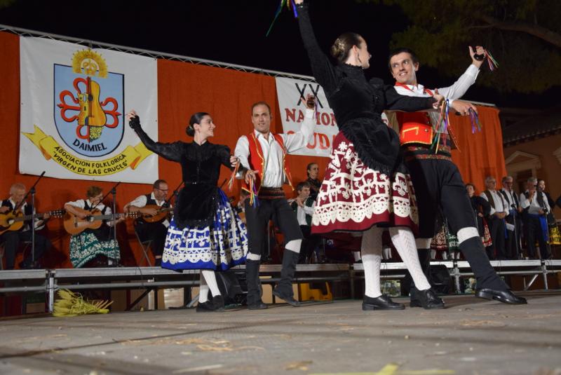 Sobre el escenario de la Plaza de España, la Asociación Cultural ‘Semillas del Arte’ de Puebla de Montalbán (Toledo); la Asociación Agrupación Folklórica ‘La Villa de Agüimes’, de Gran Canaria; la Asociación Provincial de Coros y Danzas ‘Lola Torres’, de Jaén, y los anfitriones y organizadores, la Asociación Folclórica ‘Virgen de las Cruces’ bailaron, cantaron y tocaron lo más representativo de su repertorio, en una velada cargada de efemérides.
