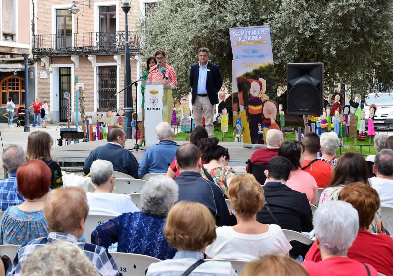 El Centro de Día de Alzhéimer ha celebrado este miércoles sus 15 años de funcionamiento en Daimiel. Lo ha hecho en la Plaza de España, en un Olivo Milenario que se ha llenado de figuras que simbolizaban a los componentes de la “gran familia” que se empezó a gestarse en 2007.