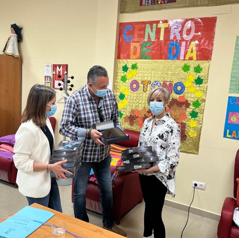 Ayer jueves, se hizo entrega a Carolina Sánchez, directora del Centro de Día de Mayores la cantidad de 10 tablets y 2 ordenadores para el disfrute de los usuarios del Centro.