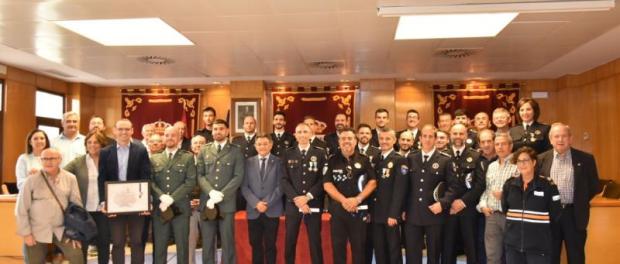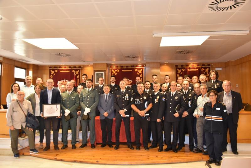 Un emotivo acto en el que, además, a petición de la Jefatura de Policía Local se reconoció la labor de varios agentes en activo durante la pandemia en atención a su esfuerzo y dedicación profesional, y también al buen comportamiento de la ciudadanía daimieleña, por lo que el alcalde Leopoldo Sierra, recibió una distinción en representación de la ciudad de mano del jefe de Policía Local, José Ángel Carrasco.
