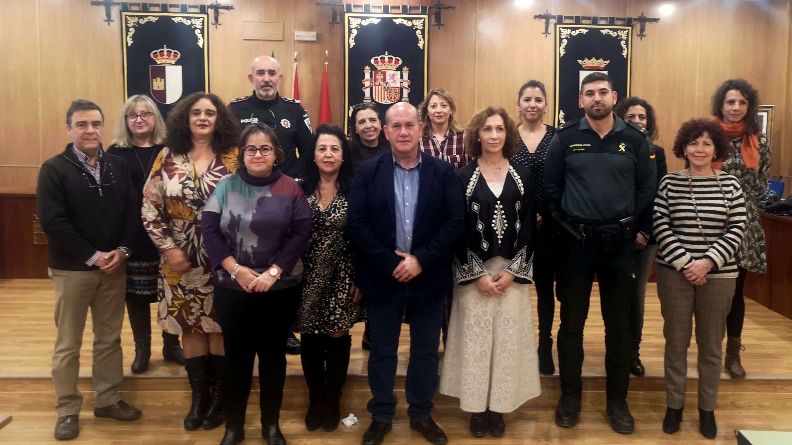 También estuvieron el teniente de la Guardia Civil, Agustín Jiménez; el Subinspector Jefe de la Policía Local, Pablo Cañadilla; representantes de Centro de la Mujer, Centro Social, Centro de Salud y Centros Educativos de Villarrubia de los Ojos, la técnica de igualdad de la consultora Inciso Integración, Cristina Cancho, e integrantes del Consejo Local de la Mujer de Villarrubia de los Ojos: Amas de Casa, Encajeras Virgen de la Sierra, Feministas de Pueblo, AMFAR, MANCHAVI y la Amistad.