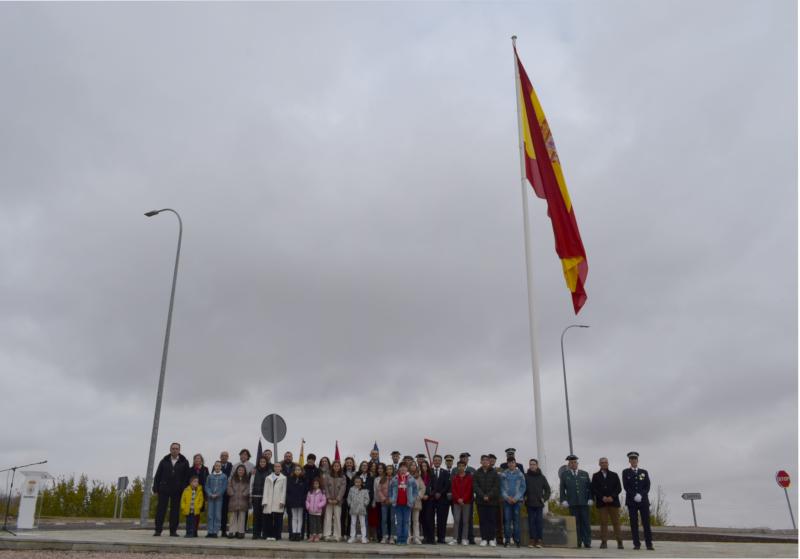 Daimiel Noticias. –Daimiel ha celebrado este 6 de diciembre por la mañana el Día de la Constitución con el tradicional izado de la bandera de España desde la rotonda del polígono SEPES, justo en el cruce de la carretera Nacional 420-430. El objetivo de este acto constitucional organizado por el Ayuntamiento ha sido celebrar el 44º aniversario de la Carta Magna, como viene realizándose desde 2018. El encargado de alzar los seis metros de largo por cuatro de ancho de la bandera ha sido el subteniente de la Guardia Civil, Emilio Camacho Romero.