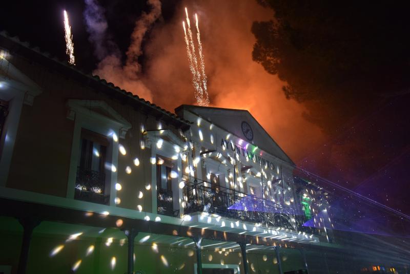 Daimiel Noticias. – La Plaza de España ha acogido este viernes por segundo año el espectáculo multimedia organizado por la concejalía de Festejos con motivo de las fiestas de Navidad. La fachada del Ayuntamiento ha vuelto a ser el escenario principal para el espectáculo de luz y sonido, en el que los fuegos artificiales, la música y las luces de colores fueron los protagonistas de la cita. El show ha comenzado puntual, a las 19:30 horas, en una plaza de España abarrotada de vecinos y vecinas que no han querido perderse el evento navideño.