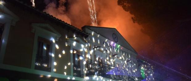 El espectáculo, que ha durado aproximadamente 20 minutos, ha proyectado luces de colores a ritmo de música mientras los fuegos artificiales han coloreado de diversos colores el cielo. También se ha podido observar bengalas en el balcón del Consistorio, llamas de fuego, copos de nieve y, por último, una gran cantidad de serpentina para cerrar el show.