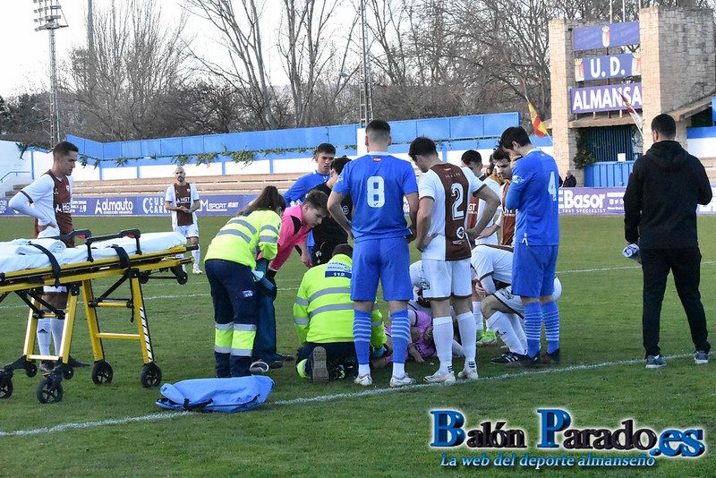 Tras varios minutos sobre el terreno de juego, una ambulancia llevó al bueno de Nico hasta el hospital de Almansa, lugar desde donde le mandaron a Ciudad Real para que se le realizase una intervención para arreglar la rotura del tendón rotuliano.