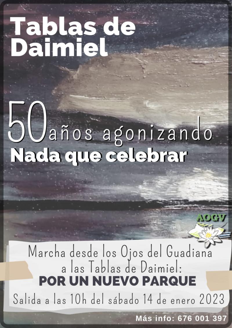 Bajo el lema “50 años agonizando. Nada que celebrar. Por un nuevo Parque”, la marcha partirá a las 10:00 horas del próximo sábado 14 de enero, de las inmediaciones de los Ojos del Guadiana, desde donde los participantes recorrerán unos 16 kilómetros, siguiendo el curso del Guadiana, hasta la entrada del Parque Natural de las Tablas de Daimiel.