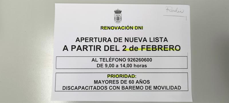 Daimiel. A partir del 2 de febrero se podrá pedir número para la renovación del DNI