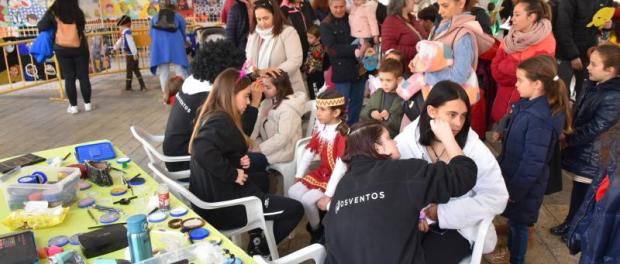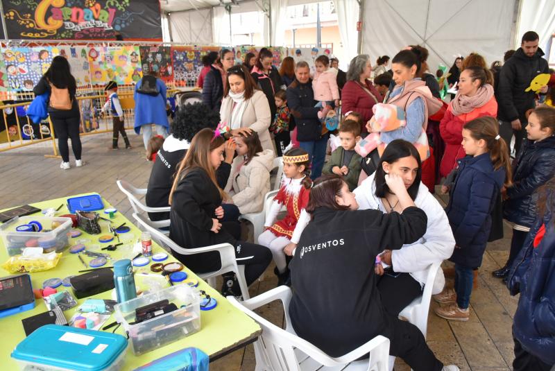 Daimiel Noticias.– El Martes del Río ha empezado a vivirse esta mañana en los concurridos talleres infantiles que hoy celebraban su segunda jornada en la carpa de la plaza. A partir del mediodía, la afluencia ha ido creciendo y todas las mesas estaban repletas con niños con ganas de hacerse su antifaz, careta o de maquillarse para combinarlo con su disfraz.