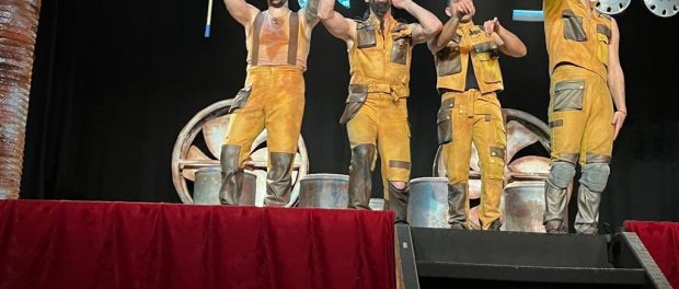 Bombonas de butano, paraguas, pelotas, cajas de herramientas, bocinas, bolsas de basura… cualquier elemento que cae en manos de estos operarios, son transformados en vistosos números musicales llenos de ingenio y humor.