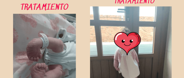 A través del método Ponseti, Cayetana evoluciona de forma muy satisfactoria de sus pies a través de diferentes tratamientos no invasivos y yesos.