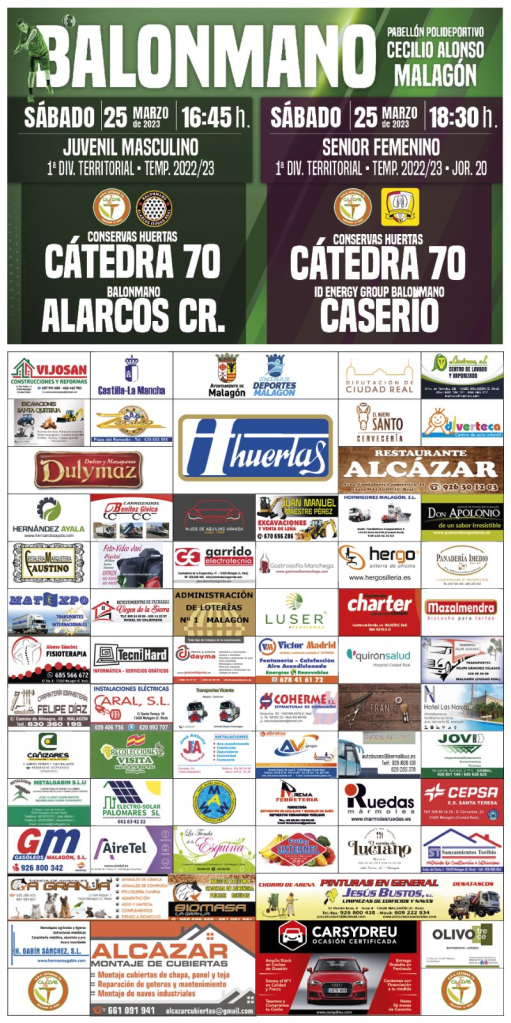 Malagón. Balonmano Cátedra 70: Juvenil Masculino y Senior Femenino Publicado en 25 marzo, 2023 por alcaldesapiedecalle en CIUDAD REAL, DEPORTES, Malagón, MUNICIPIOS // 0 Comentarios Comparte esto: Compartir en X (Se abre en una ventana nueva) X Comparte en Facebook (Se abre en una ventana nueva) Facebook Me gusta Cargando... Relacionado