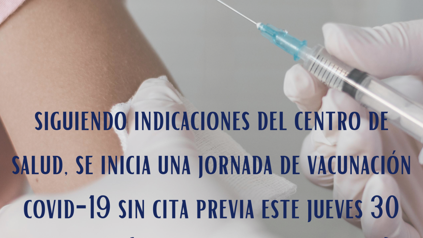 En la colaboración institucional que este Ayuntamiento mantiene con todas las administraciones y siguiendo las indicaciones del centro de salud, se pone en público conocimiento que se iniciará una campaña de vacunación covid-19 sin cita previa para este jueves 30 de marzo de 9:30 a 13h en el centro de Salud de nuestra localidad.
