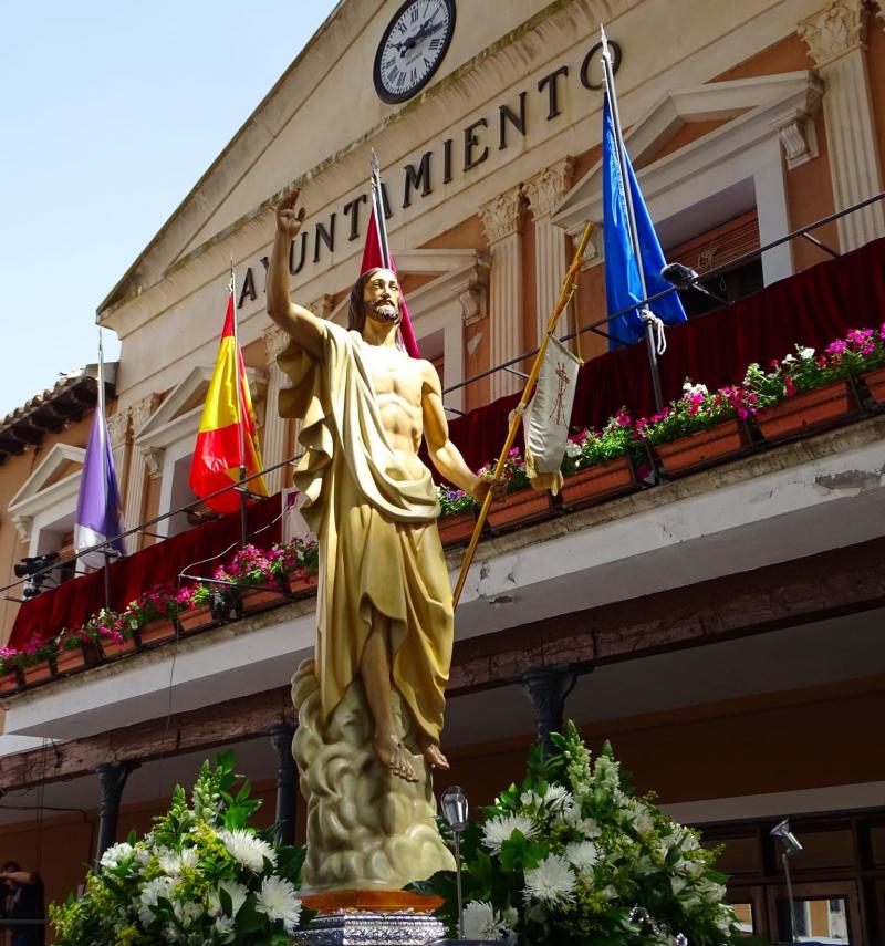 Daimiel Noticias.- Bajo un cielo despejado y con altas temperaturas, muy similar a los últimos días, procesionó el paso de Jesús Resucitado cuyo desfile organiza la cofradía de María Desolada-Hermandad del Silencio, desde la una de la tarde culminando la Semana Santa en la calle.