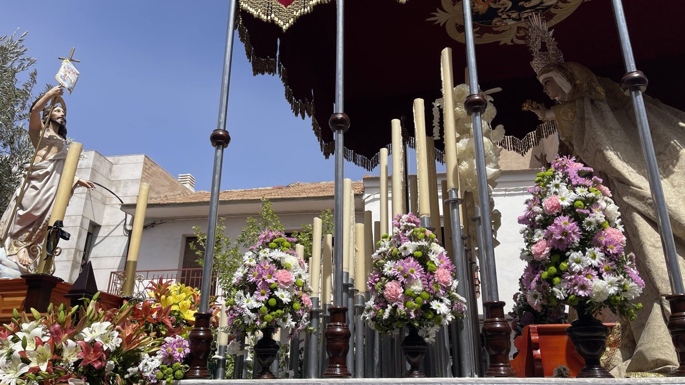 La procesión de Jesús Resucitado y la Virgen de la Alegría ha congregado en la mañana de este Domingo de Resurrección a cientos de personas que quisieron acompañar a las imágenes en su recorrido. El sol brillaba con fuerza y el ambiente era festivo y alegre.