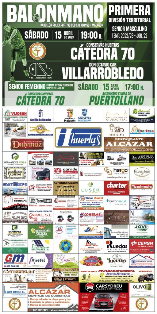 Malagón. Balonmano: Partidos de los Primeros Equipos Senior Masculino y Femenino del Cátedra 70 Publicado en 13 abril, 2023 por alcaldesapiedecalle en CIUDAD REAL, DEPORTES, Malagón, MUNICIPIOS // 0 Comentarios Comparte esto: Compartir en X (Se abre en una ventana nueva) X Comparte en Facebook (Se abre en una ventana nueva) Facebook Me gusta Cargando... Relacionado