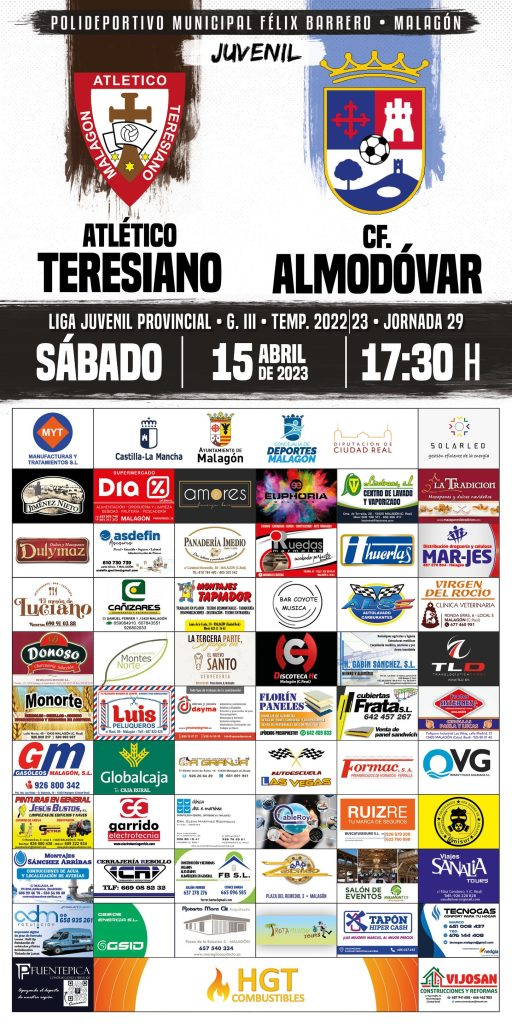 Malagón. Fútbol Juvenil: Atlético Teresiano – CF Almodóvar Publicado en 13 abril, 2023 por alcaldesapiedecalle en CIUDAD REAL, DEPORTES, Malagón, MUNICIPIOS // 0 Comentarios Comparte esto: Compartir en X (Se abre en una ventana nueva) X Comparte en Facebook (Se abre en una ventana nueva) Facebook Me gusta Cargando... Relacionado