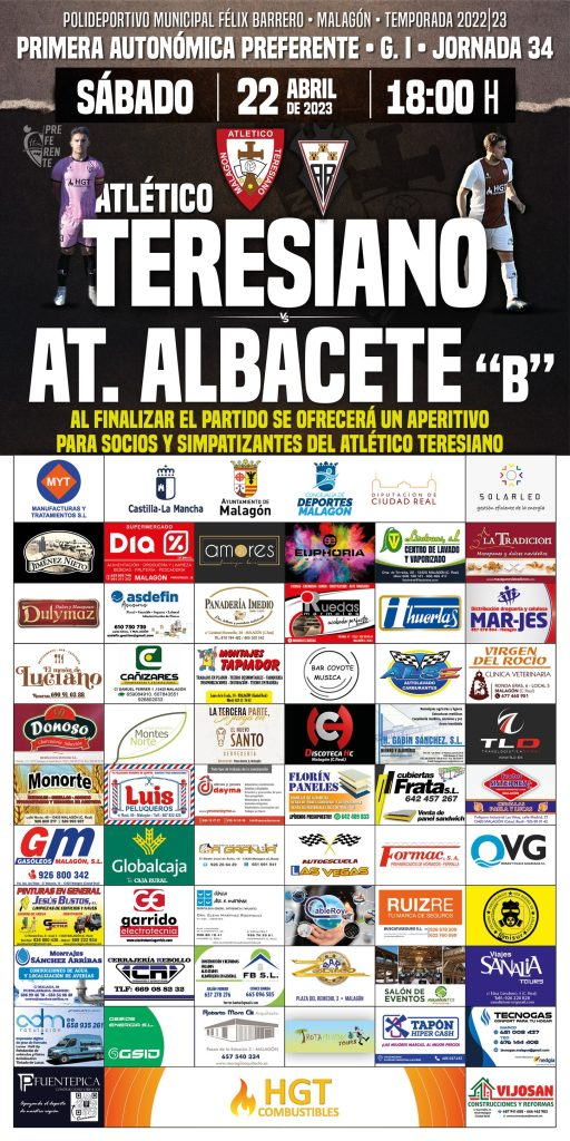 Malagón. Fútbol: Atlético Teresiano – Atlético Albacete «B» Publicado en 19 abril, 2023 por alcaldesapiedecalle en CIUDAD REAL, DEPORTES, Malagón, MUNICIPIOS // 0 Comentarios Comparte esto: Compartir en X (Se abre en una ventana nueva) X Comparte en Facebook (Se abre en una ventana nueva) Facebook Me gusta Cargando... Relacionado
