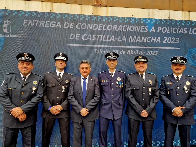 Se trata de los oficiales Alfonso Araque y José Miguel Medina y los agentes Carlos Fernández-Bermejo y Juan Félix López, quienes han sido reconocidos dentro de un acto institucional organizado por la Junta de Comunidades de Castilla-La Mancha en Toledo y al que también ha sido invitado el alcalde, Leopoldo Sierra, quien ha querido expresar su apoyo al Cuerpo.