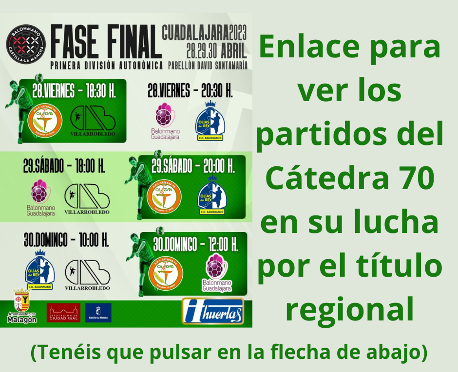 Malagón. Enlace para ver los partidos del Cátedra 70 en su lucha por el título regional