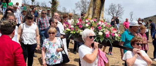 Los vecinos de las Povedillas y los que se acercaron desde Malagón y otros lugares limítrofes han desfilado en procesión junto a la imagen de la Santa en un pequeño recorrido que bordea el monte antes de regresar a su cima.