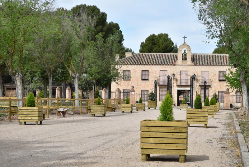 El Santuario estrenará el acceso central que desemboca en el templo y cuya plataforma ha sido ampliada al doble de anchura y se la ha vallado, además de ornamentar con maceteros de madera y bancos. Para ello y previo permiso de la JCCM, se han tenido que talar cuatro arboles “no significativos”, como apuntaba su presidente, una acción ligada al compromiso del plantado de 30 árboles en 3 años, siendo 80 los nuevos árboles plantados que ya forman parte del entorno gracias a la última campaña de reforestación.