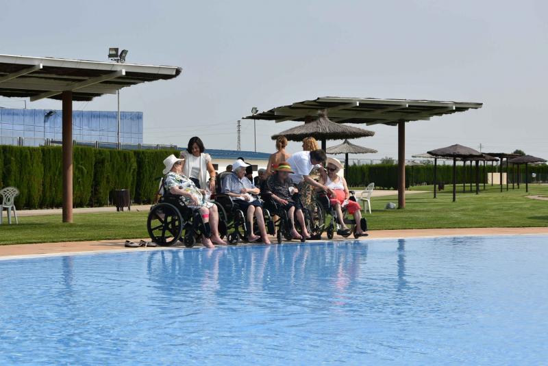 Daimiel. Las personas mayores del Centro de Día disfrutan de un chapuzón en el complejo de piscinas