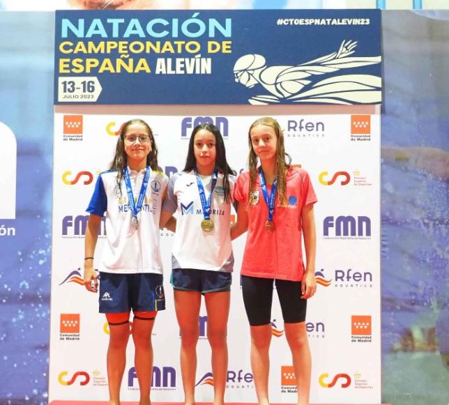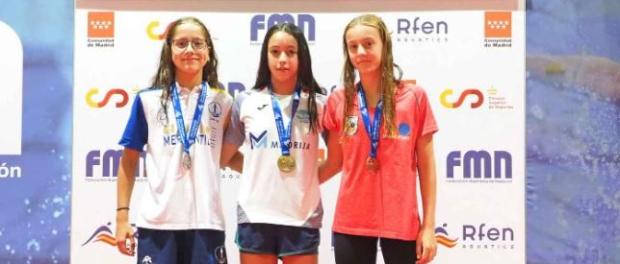 La daimieleña, de 12 años, ha logrado proclamarse campeona de España en 100 metros mariposa (1:06,30), subcampeona de España en 200 metros libre (2:15,08) y tercera de España en 200 metros estilos (2:32,23) y en 800 metros libre (9:51,70).