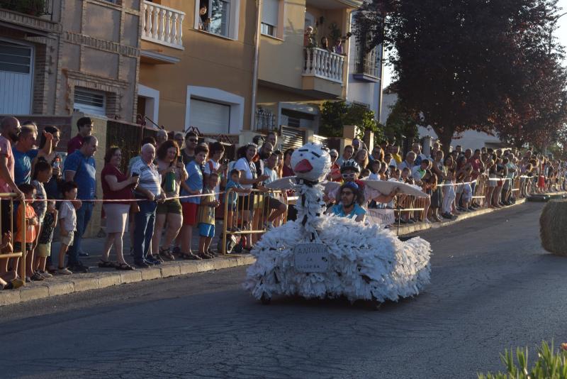 Los componentes de ‘Familia Numerosa’ con su creación ‘Antonia, la cigüeña’ obtuvieron el primer premio de 200 euros. El segundo premio de 150 euros fue para ‘Los aviadores’. La chirigota ‘El Chin-chón’, que el año pasado no pudo finalizar la carrera por avería, se alzó con el tercer premio de 100 euros transportando bombonas de butano. La chirigota también fue el primer clasificado en la categoría ‘Autos Locos Generación Z’ de 50 euros por votación popular.