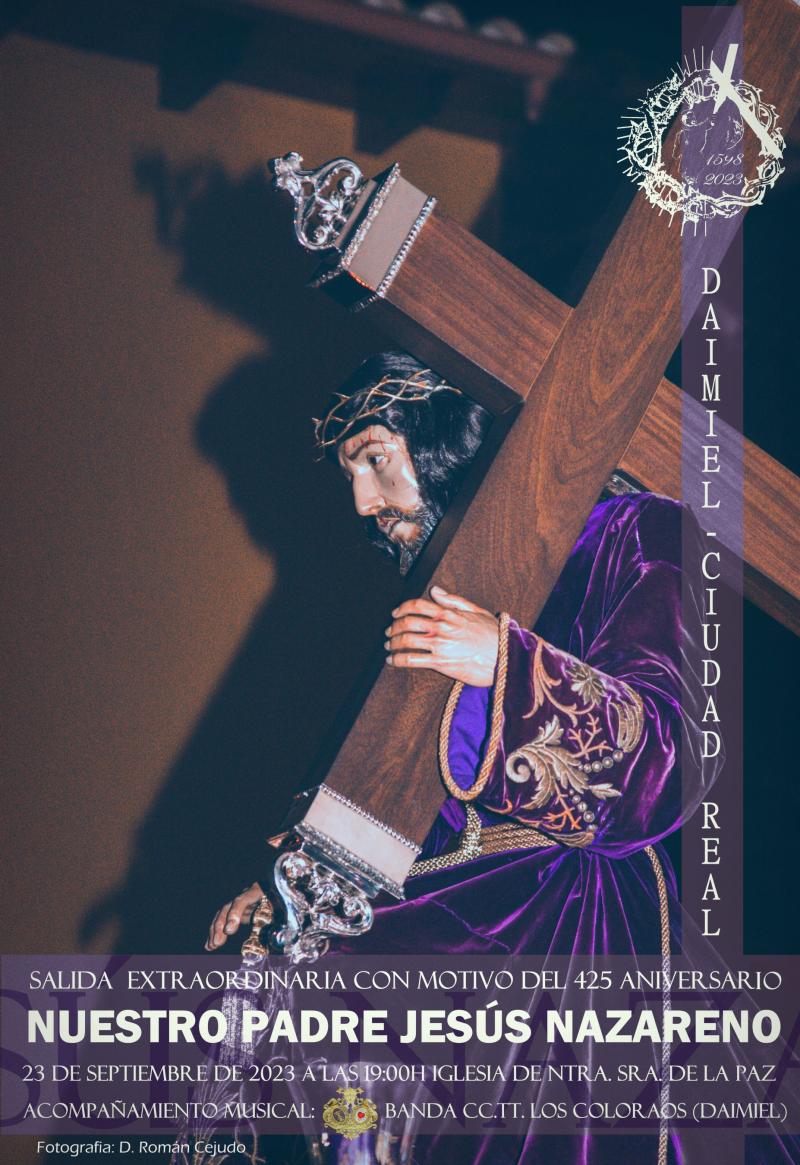 Daimiel Noticias. – La Cofradía de Nuestro Padre Jesús Nazareno ha anunciado la realización de una Salida Extraordinaria de la imagen de Nuestro Padre Jesús Nazareno para el sábado 23 de septiembre. Este evento marcará el punto culminante de los actos programados que han tenido lugar desde la pasada Cuaresma en honor al 425 aniversario de la fundación de la Cofradía.