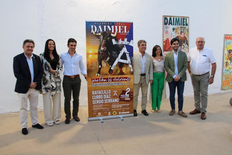 Daimiel Noticias.– El patio del Museo Comarcal acogió este viernes la presentación de la corrida de toros que se celebrará el sábado 2 de septiembre, a partir de las 18:00 horas, con motivo de la Feria 2023. Rafaelillo, Curro Díaz y Sergio Serrano serán los encargados de lidiar los toros bravos de la ganadería de Victorino Martín, que por tercer año consecutivo pisarán el albero daimieleño. Una tarde de toros organizada por la empresa especializada en eventos taurinos “Tauroemoción”, en colaboración con el Ayuntamiento de Daimiel y la Peña Taurina Daimieleña.