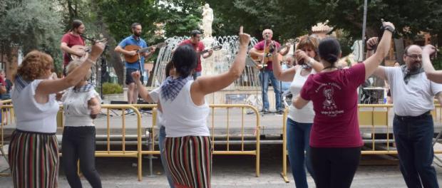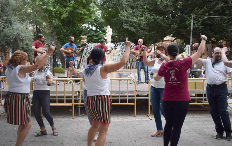 Los alumnos y alumnas de la Escuela local de folclore mostraron todo lo aprendido durante este año explicando a los más curiosos los trucos de estas labores artesanas. La presidenta de la asociación, Eva Jiménez, impartía una clase de baile para enseñar la mancha manchega. “Es una canción muy agradecida para hacer pasos sencillos y que la gente no se frustre”, señalaba.