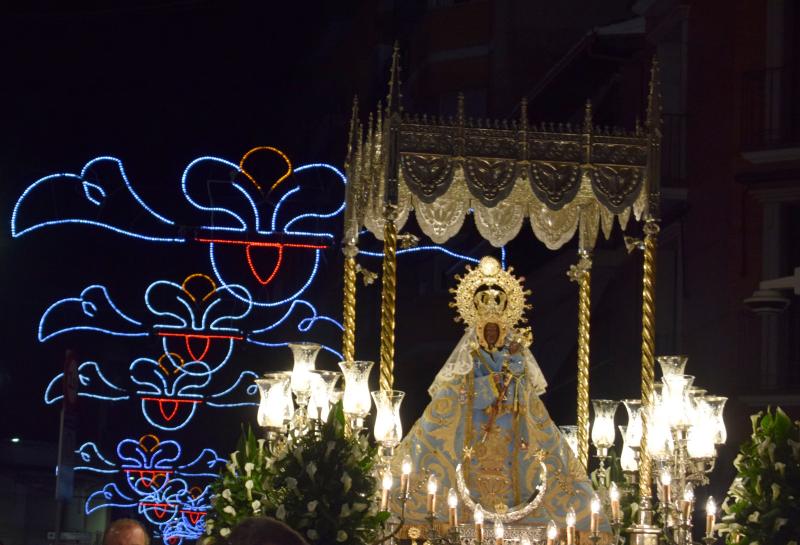 ‘La Morenita’ recorrió las principales calles de la localidad, engalanadas para la ocasión con balconeras, rodeada de una gran multitud de devotos. La Banda Municipal de Música de Daimiel y la Banda Coloraos Daimiel, amenizaron todo el desfile procesional.