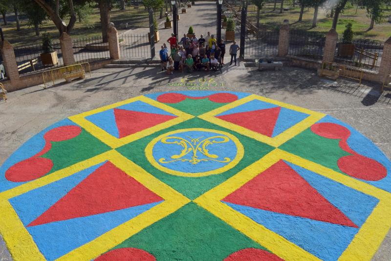 En esta ocasión, se ha representado los puntos cardinales a través de formas geométricas colocando en el centro el escudo de la virgen. El rojo, amarillo, verde y azul son los colores predominantes logrando “que llamen la atención por ser muy llamativos, brillantes e impactantes”, afirmaba Manuel Vicente López de la Nieta Fernández, presidente de la Hermandad Virgen de las Cruces. La frase ‘Viva La Patrona 2023’ destaca a los pies de una alfombra que se ha elaborado “en tiempo record” tras la gran participación por parte de los daimieleños. Por ello, López de la Nieta ha valorado la colaboración y ha animado al pueblo de Daimiel a seguir participando en los actos lúdicos y litúrgicos de este fin de semana.
