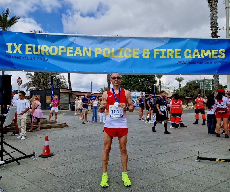 Daimiel Noticias. – El jefe de la Policía Local de Daimiel, José Ángel Carrasco, ha conseguido la medalla de plata de su categoría en la media maratón de los Juegos Europeos de Policías y Bomberos 2023 que se han disputado en Torrevieja (Alicante).