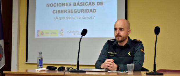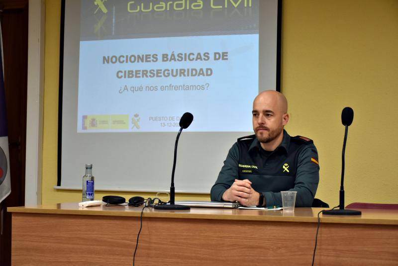 El encargado de impartirla fue Alberto Gutiérrez, comandante del puesto de la Guardia Civil de Daimiel, quien abordó las nociones básicas sobre ciberseguridad y también las principales estafas y delitos que “lamentablemente aumentan en el entorno de Internet encontrando un gran nicho a través de los teléfonos móviles”.