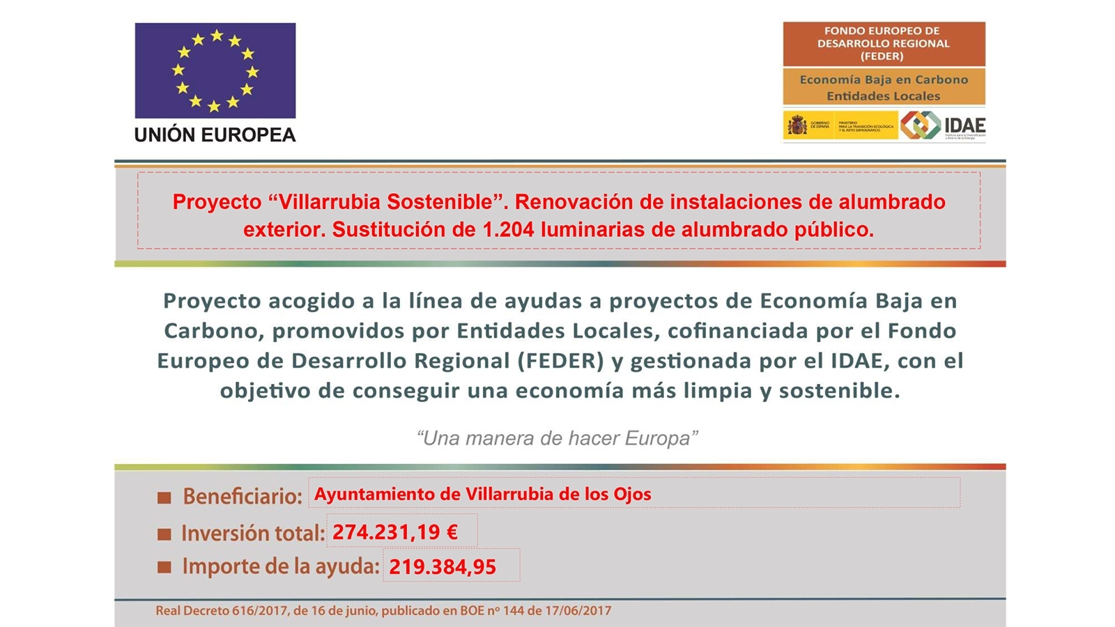 PROYECTO «VILLARRUBIA SOSTENIBLE» Publicado en 13 diciembre, 2023 por alcaldesapiedecalle en CIUDAD REAL, MUNICIPIOS, SOCIEDAD, Villarrubia de los Ojos // 0 Comentarios Renovación de instalaciones de alumbrado exterior. Sustitución de 1.204 luminarias de alumbrado público. Comparte esto: Haz clic para compartir en X (Se abre en una ventana nueva) X Haz clic para compartir en Facebook (Se abre en una ventana nueva) Facebook Me gusta Cargando... Relacionado