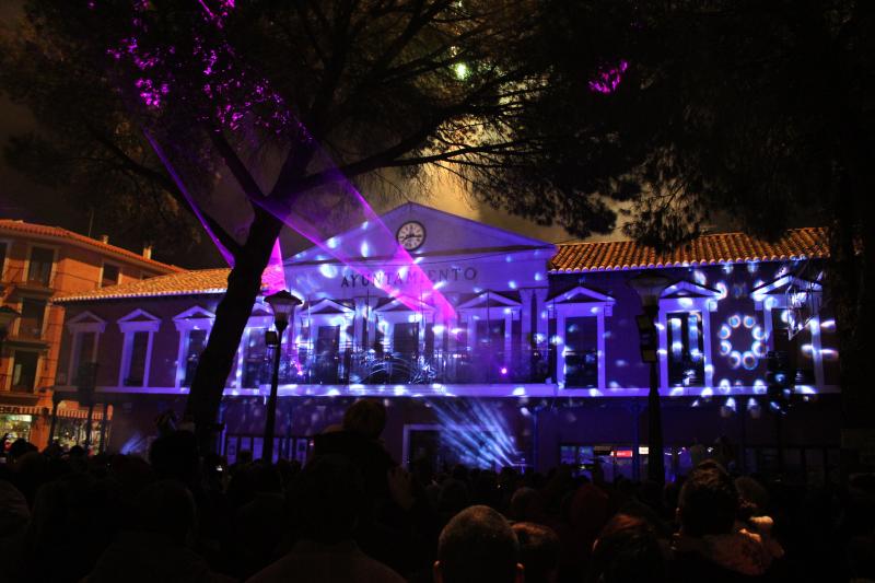 Daimiel Noticias.- El espectáculo multimedia de Navidad planteado por la delegación de Festejos para la noche del viernes 22 ha comenzado puntual a las 20:00 horas desde la Plaza de España. Durante 20 minutos se han ido desencadenando proyecciones de luz, música y fuegos artificiales. El evento ha sido seguido por multitud de personas, especialmente familias que han dejado pequeño este punto céntrico de la ciudad.