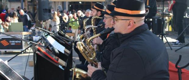 Una mañana acompañada por cielos despejados y un sol que ha mitigado las bajas temperaturas que caracterizan esta época del año. Ese hecho ha contribuido a la afluencia de espectadores; incluso hubo quienes se animaron a bailar al compás del swing y del jazz que la banda entonaba.
