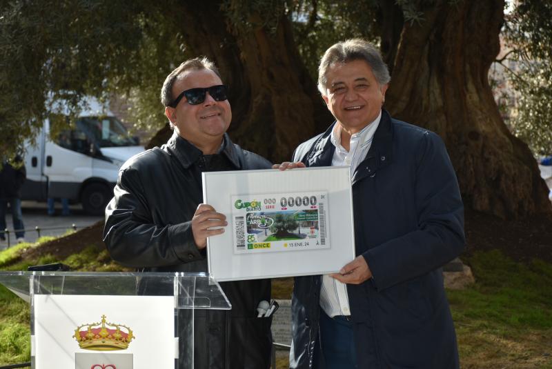 Daimiel Noticias.- El Olivo Milenario de Daimiel aparecerá en el cupón de la ONCE del lunes, 15 de enero de 2024, perteneciente a la serie ‘Abraza tu árbol’. Cinco millones de cupones difundirán la imagen de este monumental ejemplar, como se expuso este martes durante la presentación in situ del director de la agencia de la ONCE en Ciudad Real, Lorenzo Villahermosa, y el alcalde de Daimiel, Leopoldo Sierra.