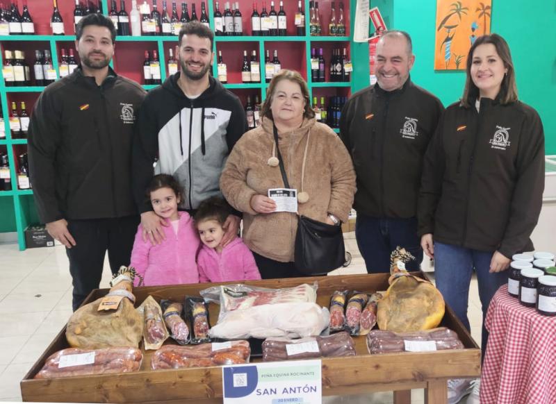 Daimiel Noticias.– La Peña Equina Rocinante entregó este martes por la tarde el lote de productos y derivados porcinos de su rifa del guarrillo de San Antón. Su presidente, Luis Miguel Romero, detallaba este amplio surtido a su ganadora, Teresa Baeza, que participa cada año en el sorteo y que avanzaba parte de la que tiene pensado preparar con este rico regalo.