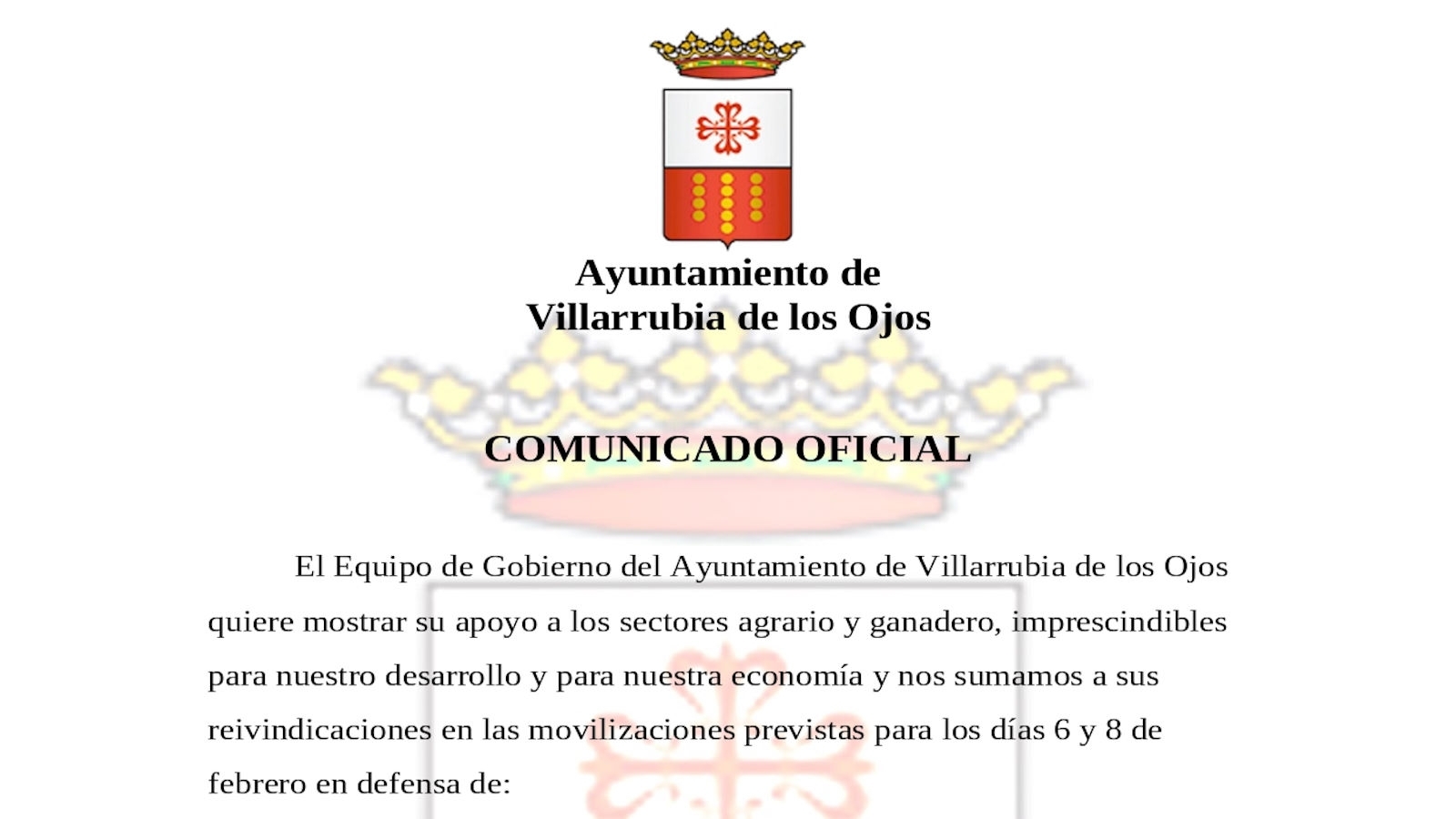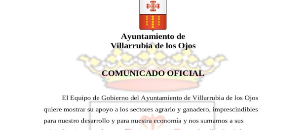 El Equipo de Gobierno del Ayuntamiento de Villarrubia de los Ojos quiere mostrar su apoyo a los sectores agrario y ganadero, imprescindibles para nuestro desarrollo y para nuestra economía y nos sumamos a sus reivindicaciones en las movilizaciones previstas para los días 6 y 8 de febrero.