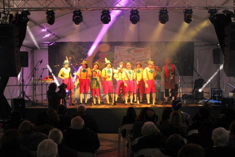 Los primeros en subir al escenario fueron los componentes del Chin-Chón disfrazados de ‘pinochos’ que abrieron su actuación señalando a las nuevas tecnologías y, especialmente, a la inteligencia artificial y las redes sociales, como fuente de amistad. En ese recorrido, la agrupación se detuvo en Sánchez y Puigdemont, mientras que en el análisis local se coló la Plaza de España, la tienda de Vicentillo y la últimas elecciones municipales con adiós incluido al hasta hace una semana portavoz municipal.