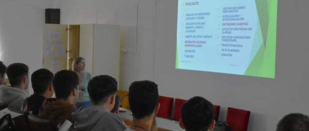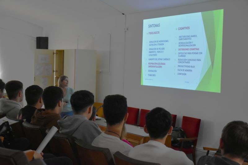 Con un enfoque preventivo, la encargada de impartir la charla fue la psicóloga clínica Gema Peinado. Ella explica a los jóvenes cómo es la naturaleza de la ansiedad y cómo afecta a nivel de rendimiento cognitivo. También, los síntomas que pueden aparecer y pautas de manejo. Son conceptos que igualmente fueron abordados de manera práctica en esta primera sesión.