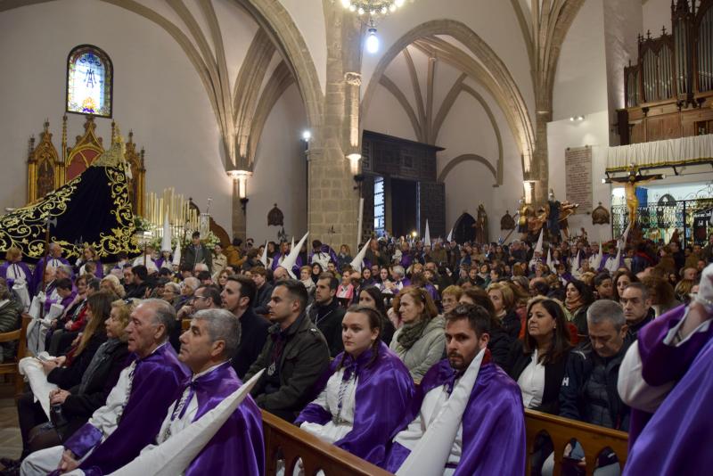 Posteriormente, la Banda Municipal de Música ha interpretado las tres marchas procesionales de la cofradía emocionando a los allí presentes. Tras ellos, el consiliario de ‘Los Blancos’, Valentín Sánchez-Rojas, ha ofrecido un pequeño acto litúrgico ante una iglesia de Santa María abarrotada de hermanos y fieles.
