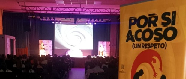 La representación teatral ‘Por si acoso (un respeto)’ llegó a Villarrubia de los Ojos (Ciudad Real) ayer jueves al mediodía. Una función que manifiesta la amarga existencia del acoso escolar y la violencia entre los jóvenes a través de una trama que invita a reflexionar y a tomar conciencia sobre este problema. La obra iba dirigida a los alumnos de la ESO de la localidad, participando unos 200 estudiantes de los IES Guadiana y Dominicas de Villarrubia con sus profesores.